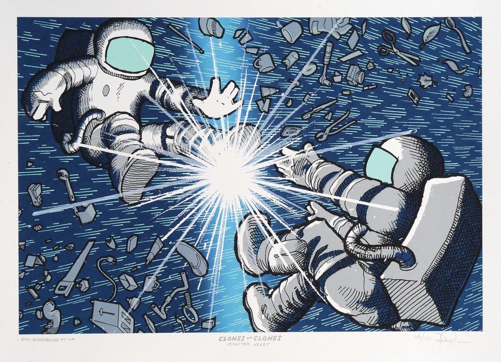 Limited edition screen printed poster made by the brilliant Jay Ryan at The Bird Machine, who also designed the artwork for the 'Monster Heart' LP. Only 140 of these were made--we have 50 of them. Jay had the rest but he sold out of them. signed and numbered by the artist.